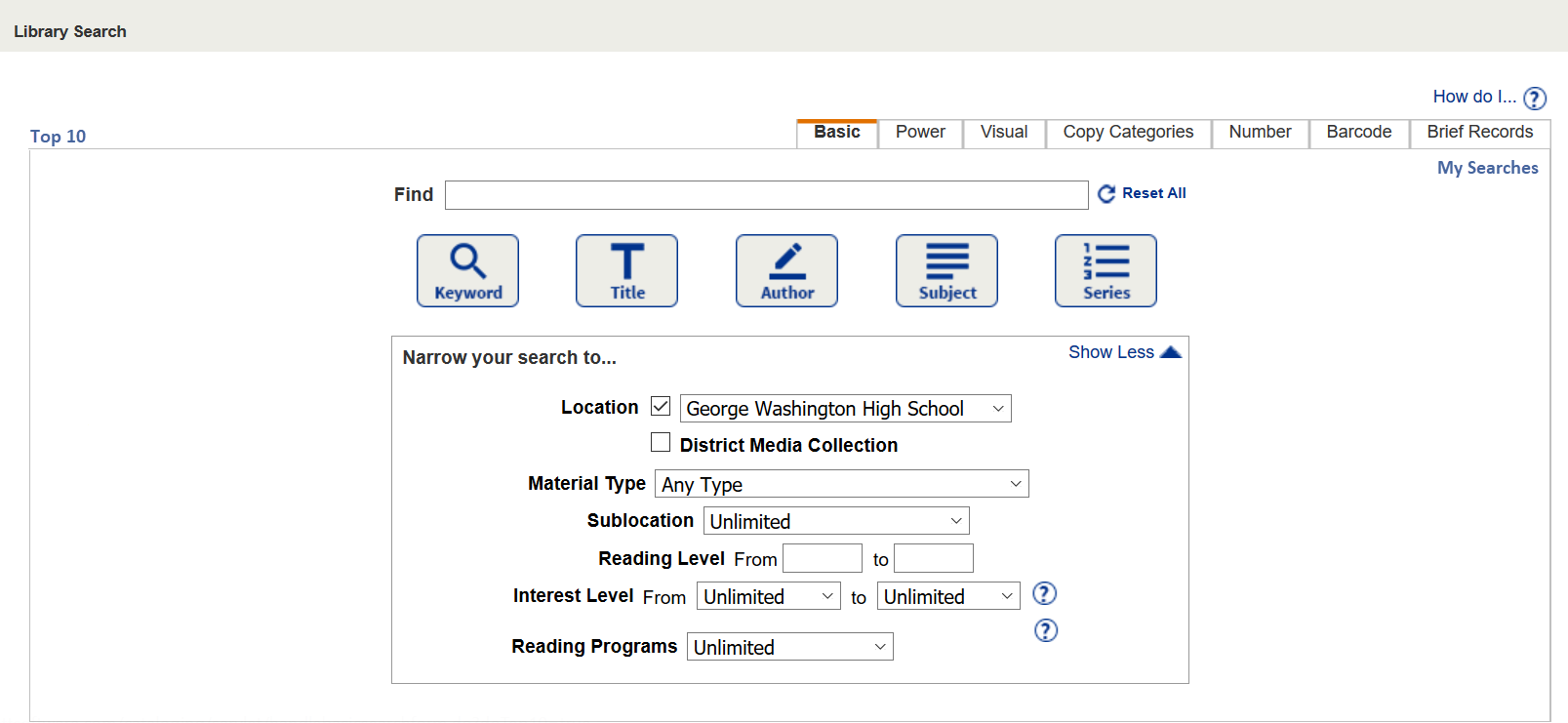 There are many ways to search for materials, starting from Catalog > Library Search. Following are some tips to use when performing a Basic or Power search.
